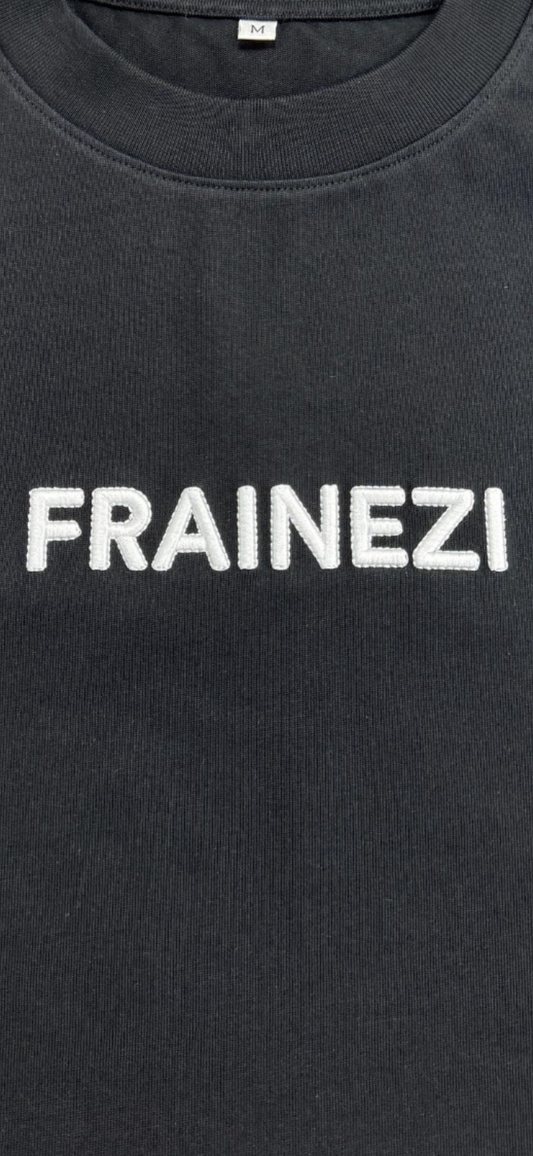 Ce t-shirt FRAINEZI incarne l’ADN de la maison : une présence forte, sans excès. Confectionné dans un coton épais de haute qualité, il se distingue par sa broderie FRAINEZI blanche finement réalisée sur la poitrine, symbole d’identité et de maîtrise.